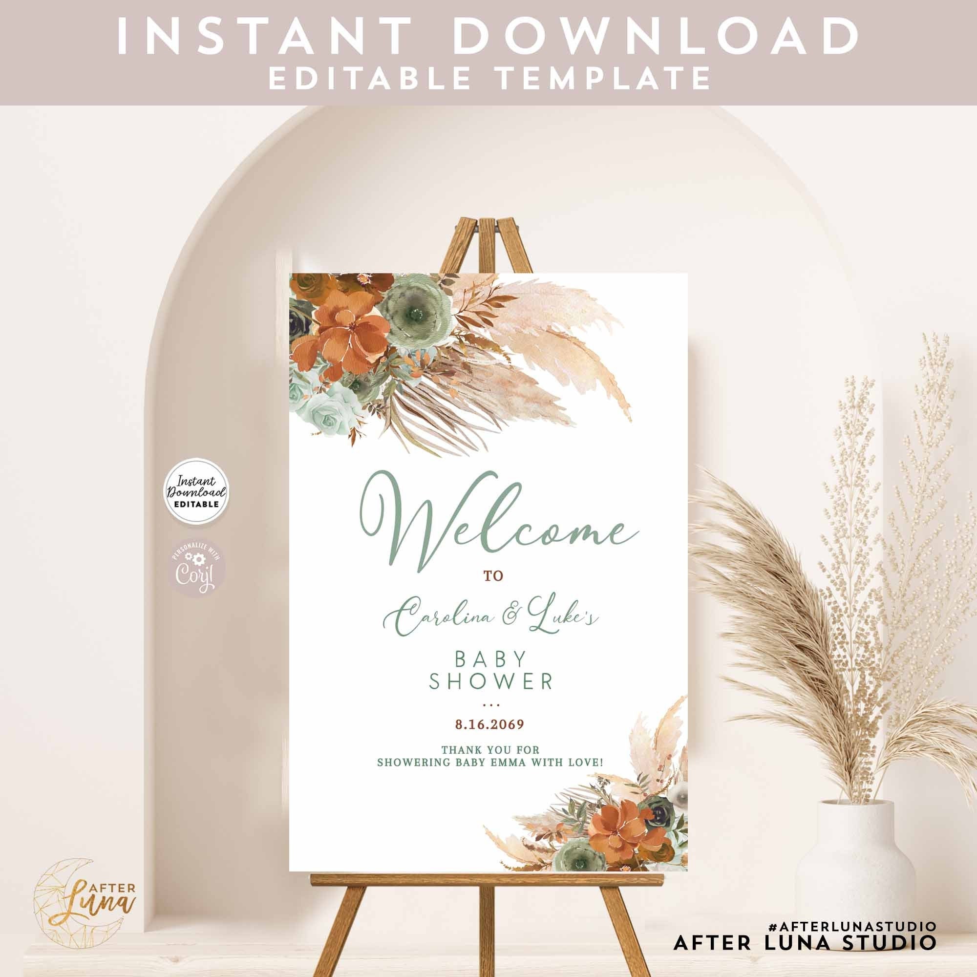 Editable ANY EVENT Sage Green Burnt Orange Pampas Grass Boho Etsy